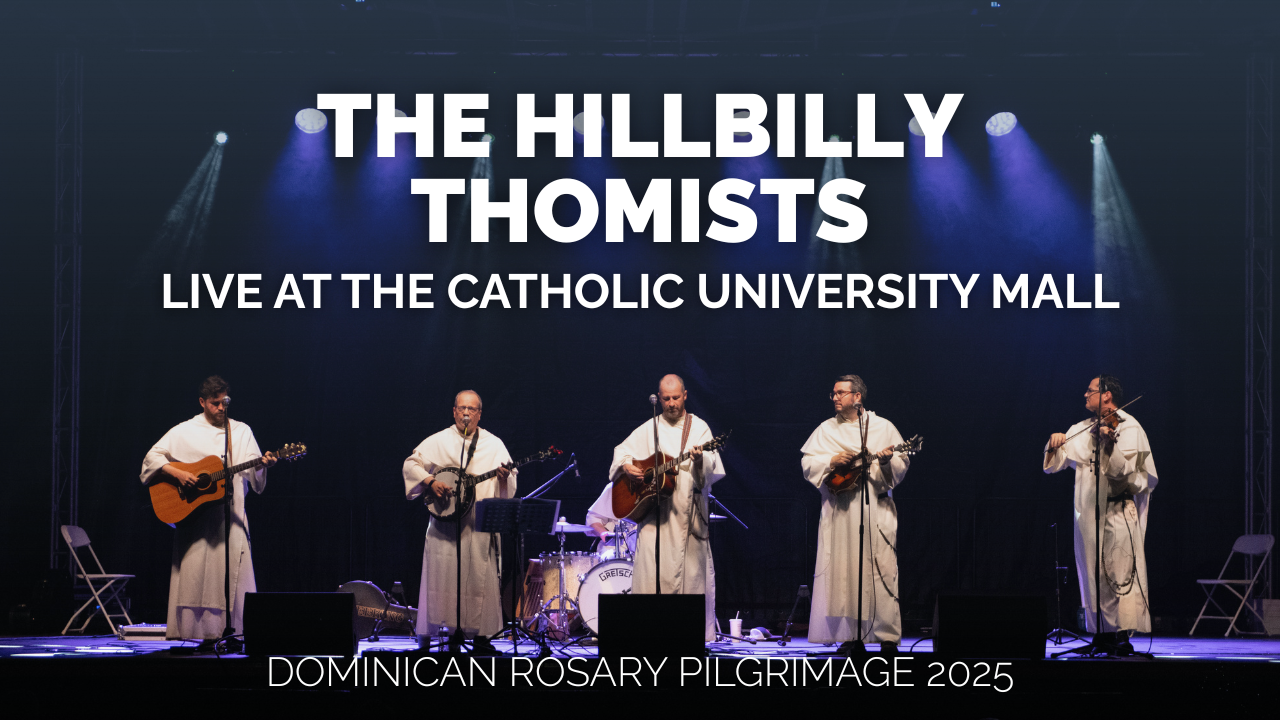 Experience the Hillbilly Thomists live at the Dominican Rosary Pilgrimage. This full concert brings together pilgrims and friars in music, prayer, and reflection, capturing the joy and reverence of the day.